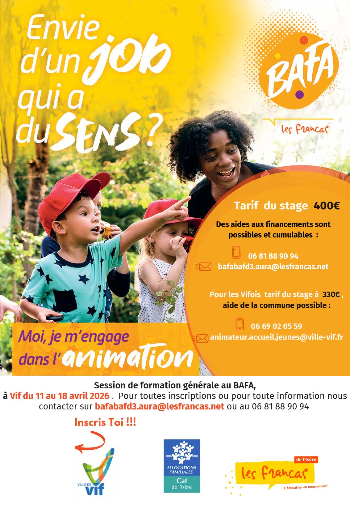 Les Francas de l’Isère organisent, en partenariat avec la Ville de Vif, une session de formation générale au BAFA du 11 au 18 avril 2026.